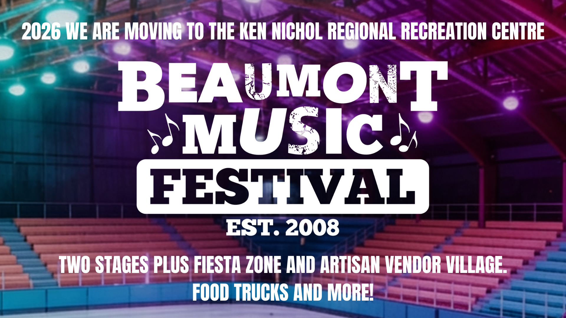 The Beaumont Music Festival 2026 is moving to the Ken Nichol Rec Centre in the heart of the City of Beaumont, Alberta.